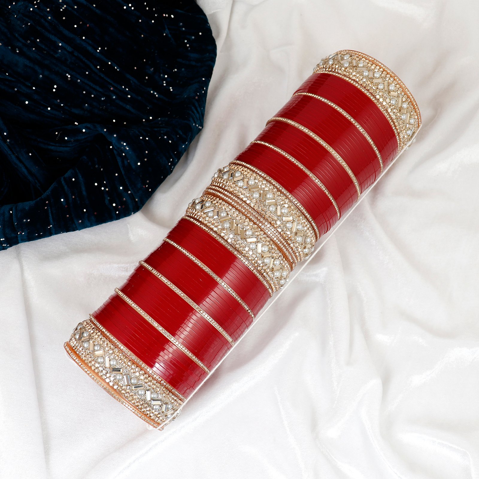 Featuring rich bangles combined with sparkling stones and golden detailing, this Chudi is perfect for weddings, bridal wear, and special occasions.