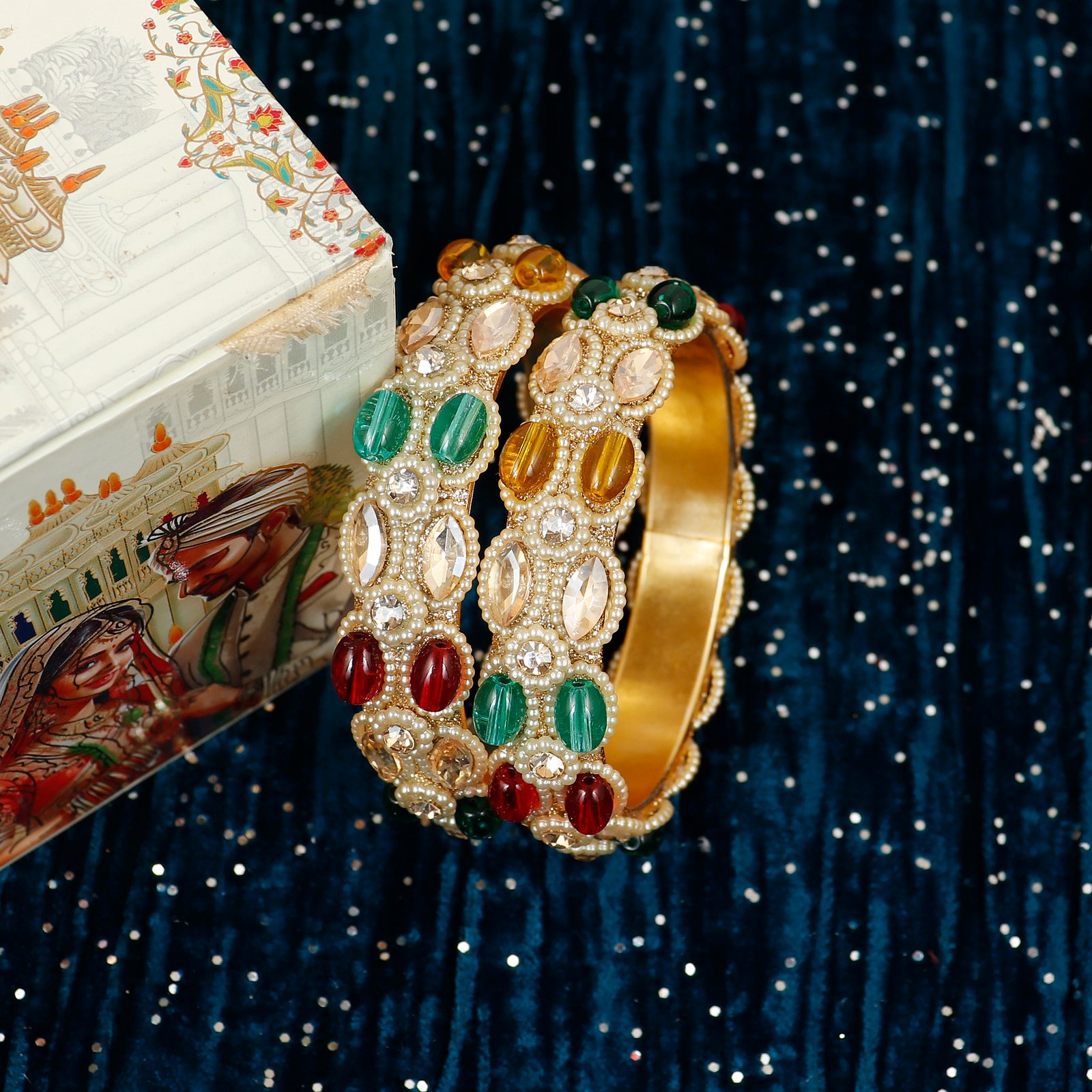 Featuring rich bangles combined with sparkling stones and golden detailing, this Kada is perfect for weddings, bridal wear, and special occasions.
