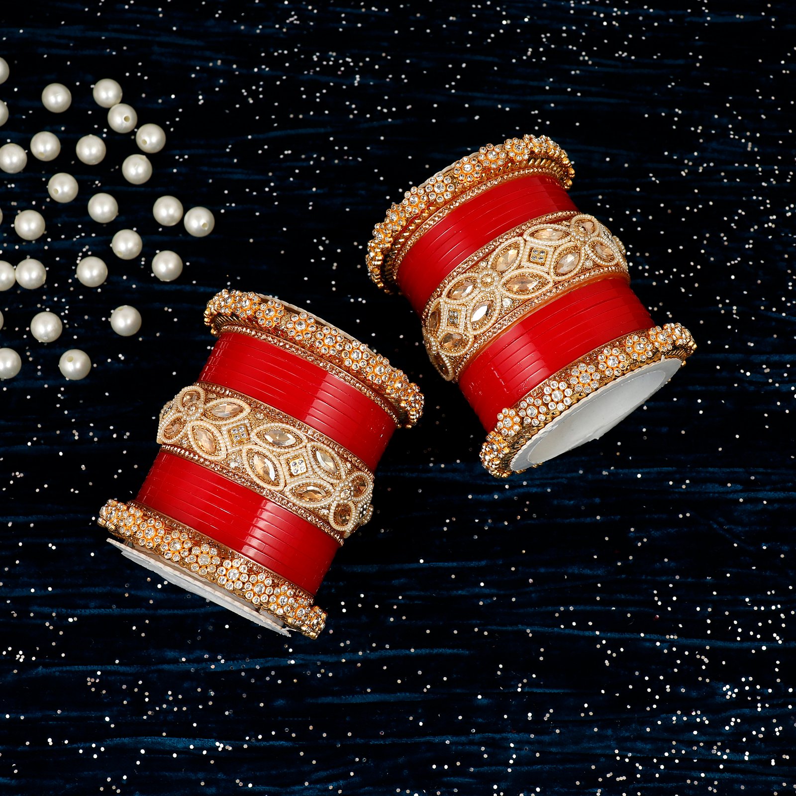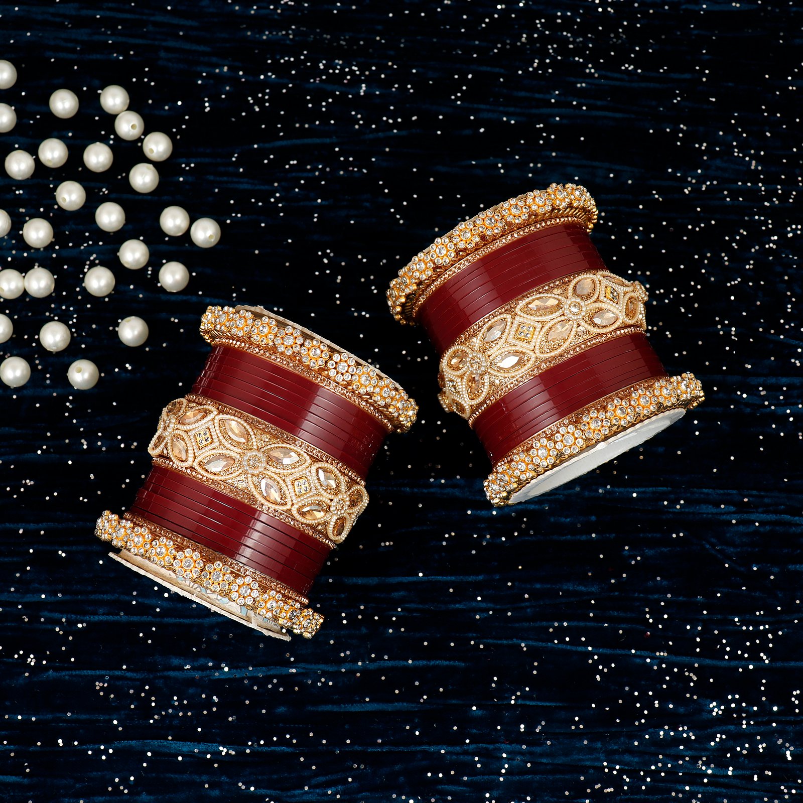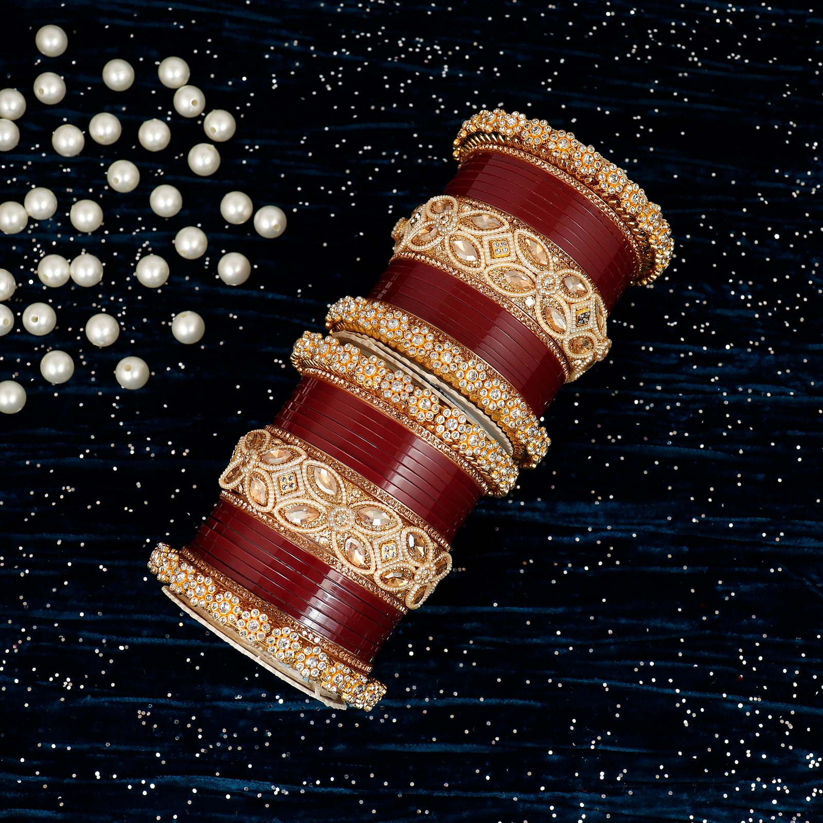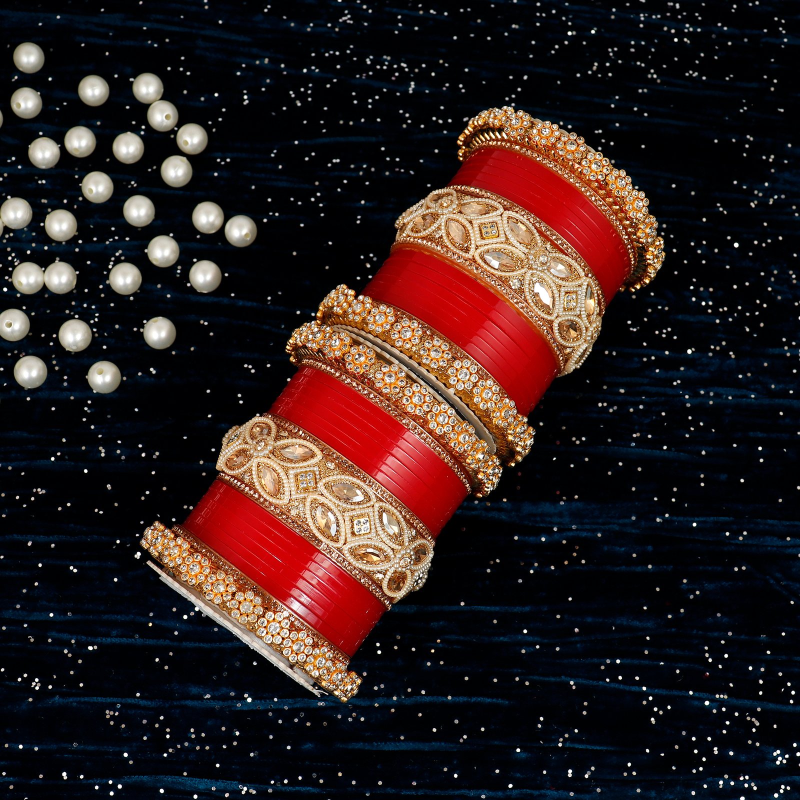 Featuring rich bangles combined with sparkling stones and golden detailing, this Chudi is perfect for weddings, bridal wear, and special occasions.